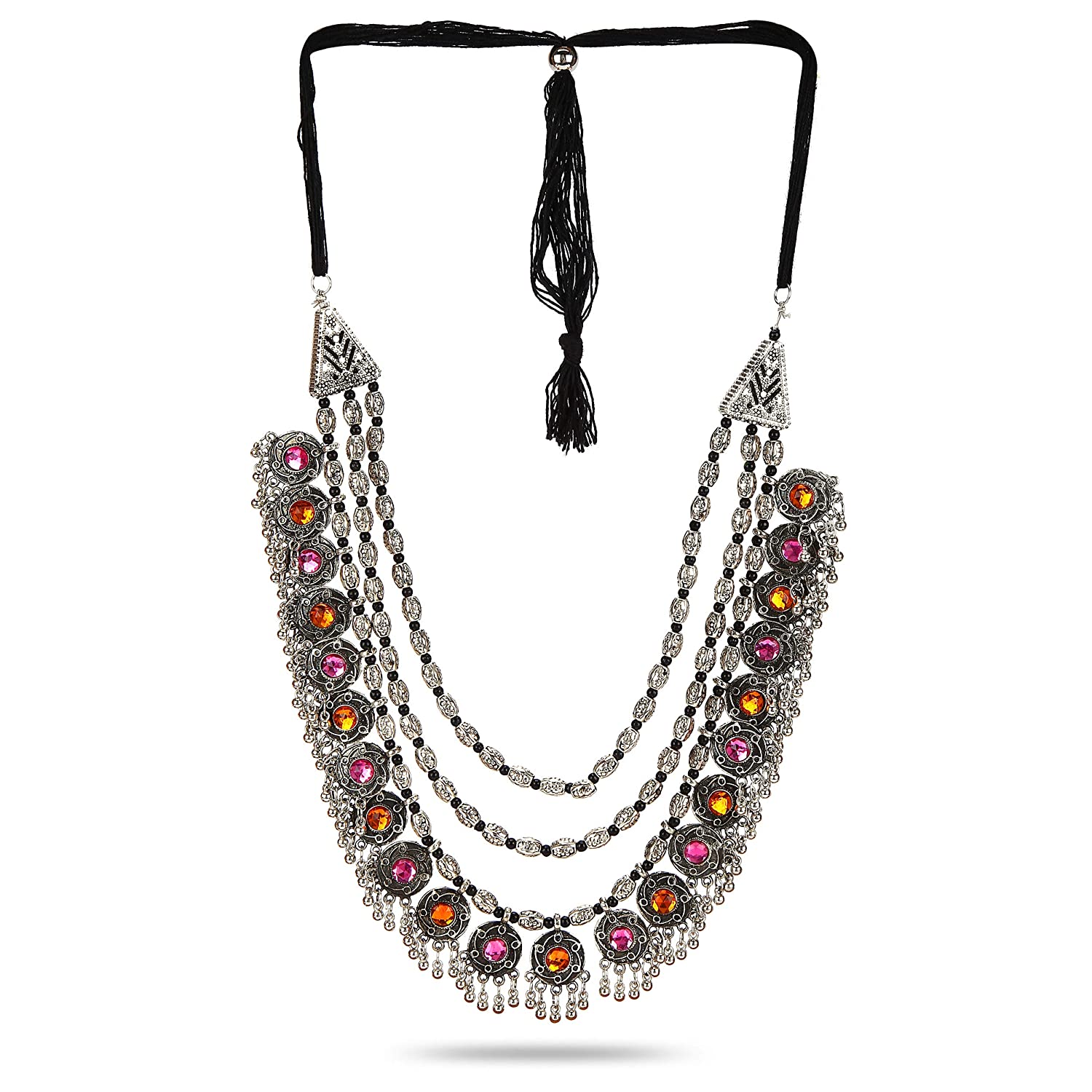 Fashion Jewellery Antique Oxidised Silver Plated Tribal Jewellery Necklace Earring Set for Women & Girls.(Valentine Gift Special). (Multi)