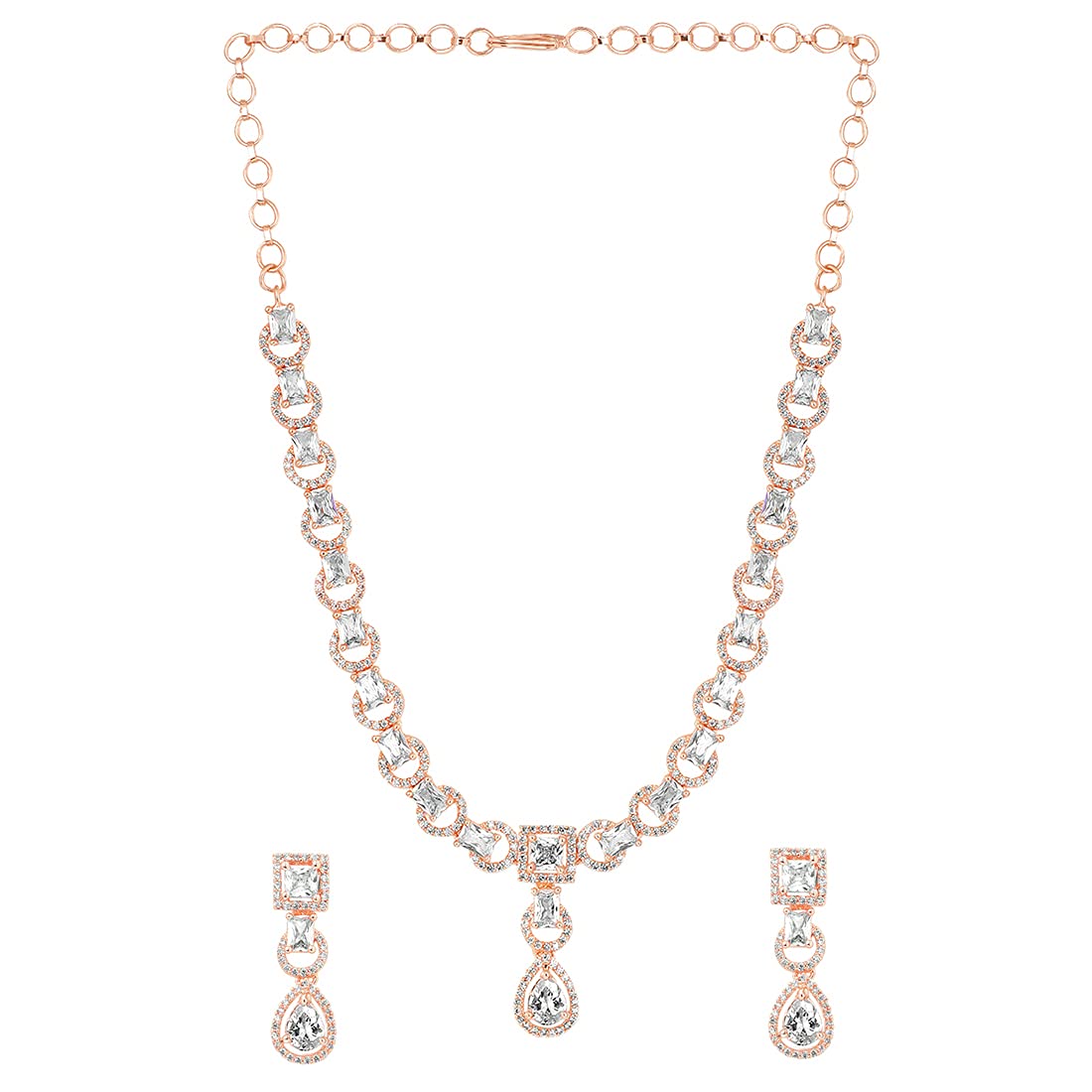 - Unique & Classic Look white American Diamond Necklace set for women ,This Rosegold plated necklace set with earrings for AD/Americal Diamond jewellery set for women sparkling necklace set A5 grade clarity is stunning and preciously suitable for all kinds of occasions.Our Product is perfect for valentines Anniversary Birthday gift for Women,girlfriend,Wife.