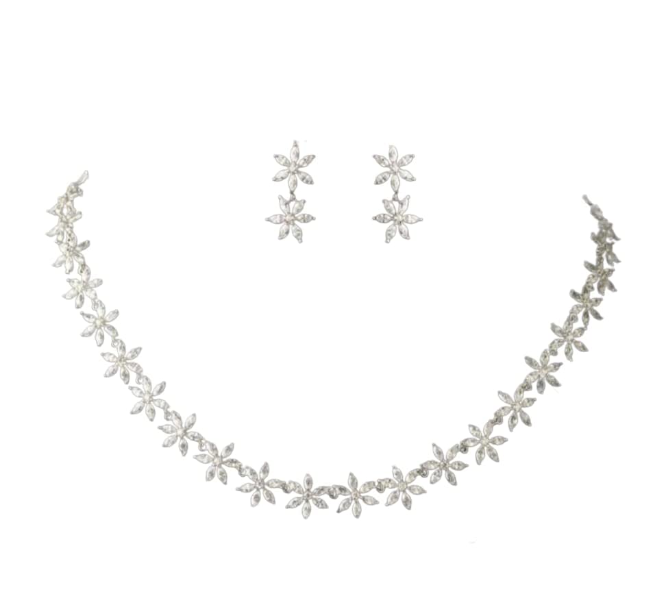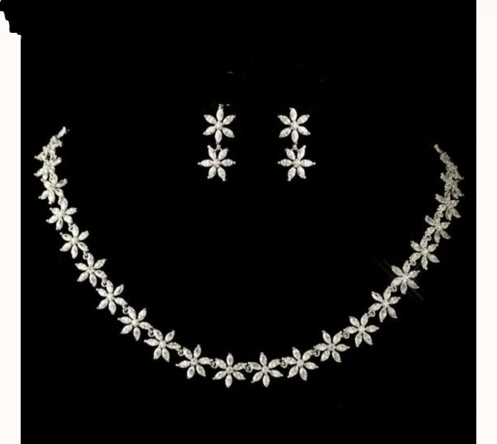 - What you get: 1 N Rhodium Plated American Diamond Studded Silver Tone Necklaces With Matching 2 N Earrings adding a hint of raw modern beauty to any look, The Silver Toned further ensures a long-lasting shine.!!