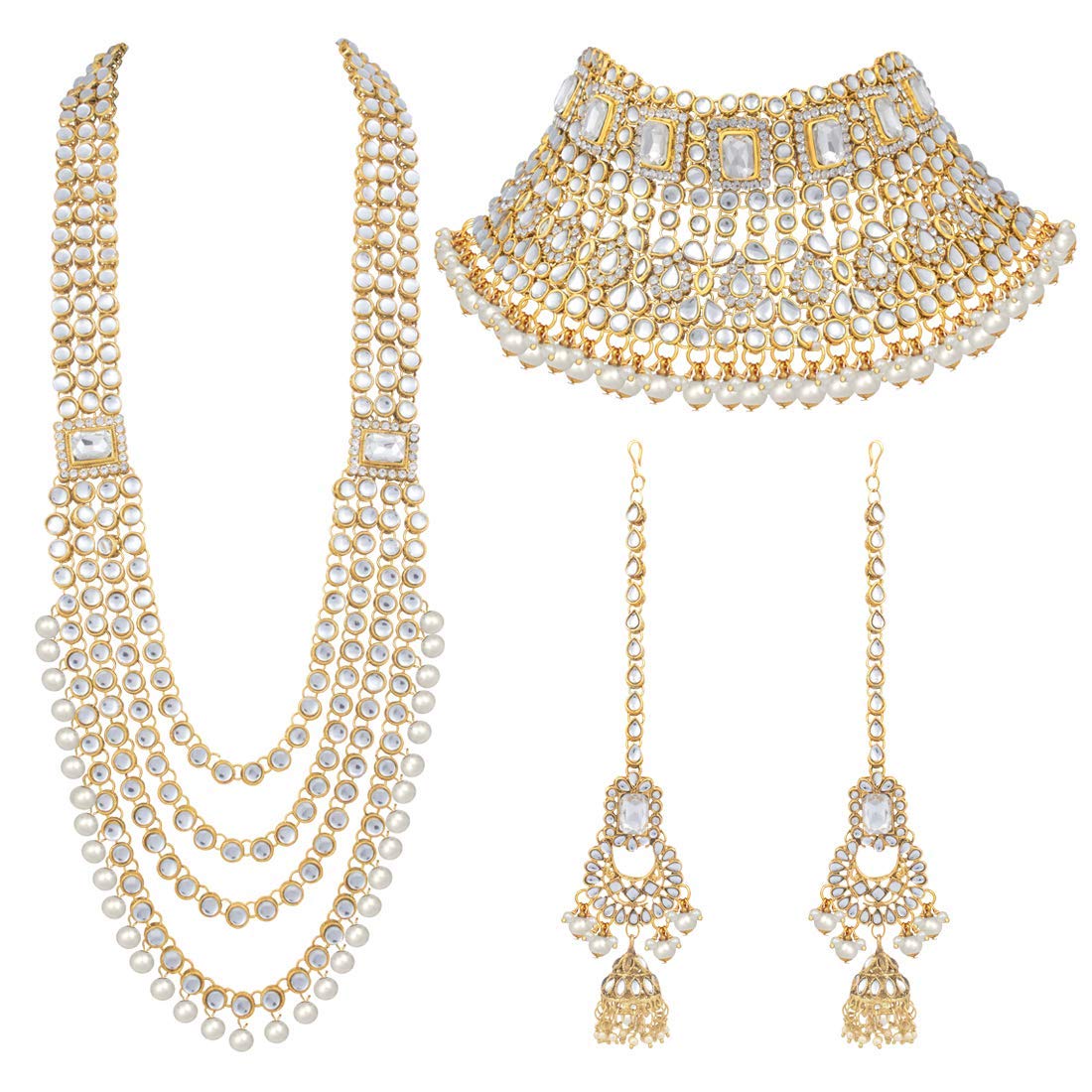 - Graceful and flawless: give yourself that beautiful look and make others jealous with our traditional necklace set. It has a high quality imitation kundan stones which gives it an edge over other earrings. This is a one of a kind design which will go with all types of dresses
