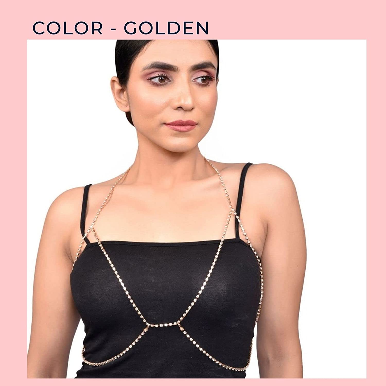 Layered Crystal Body Chains Luxury Harness Bra Chains Beach Bikini Chains Shiny Party Body Jewelry for Women and Girls