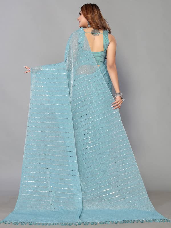 Women'S Lycra Shimmer Tassel & Paper Foil Saree With Unstitched Blouse Piece
