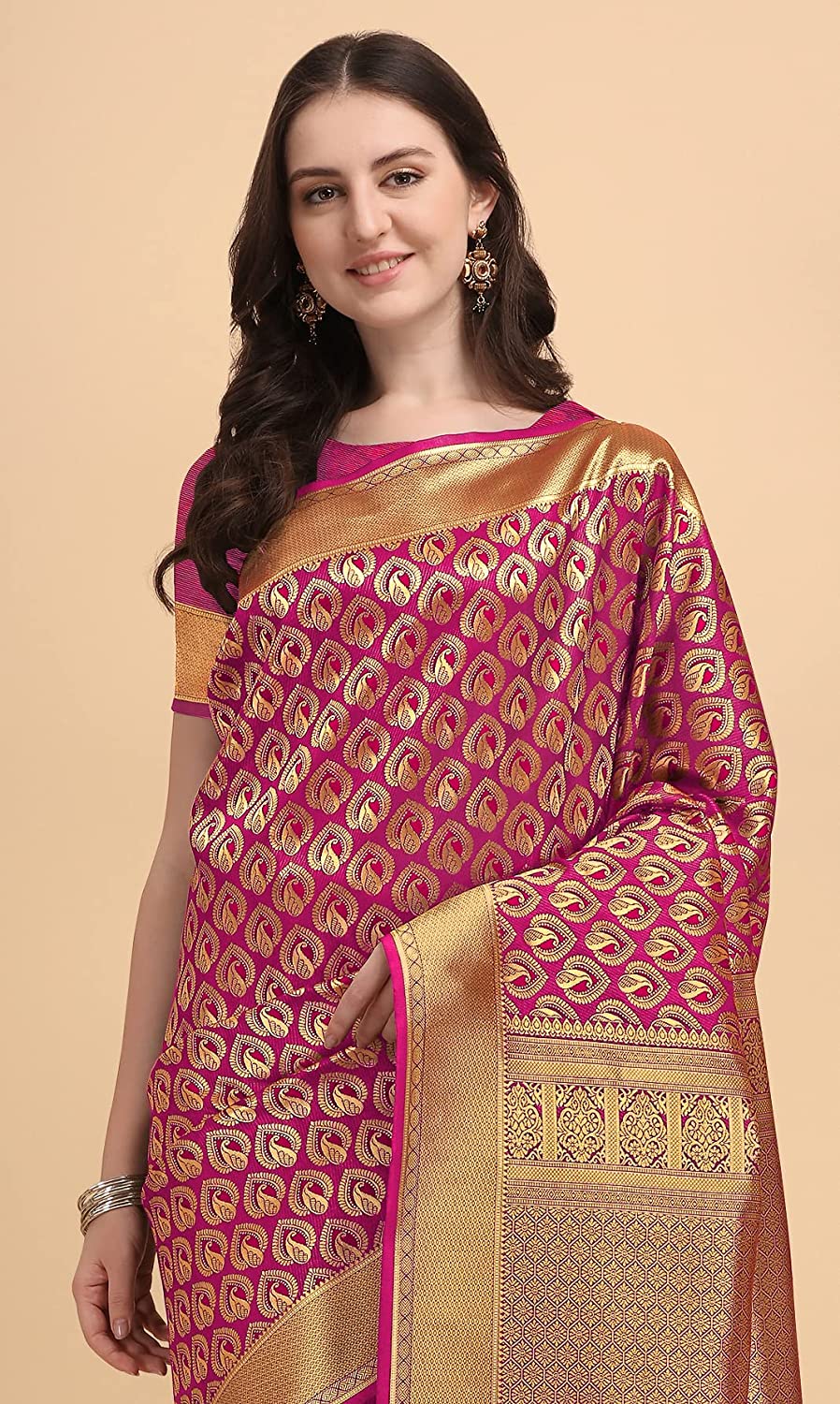Banarasi Silk Sarees With Zari Jacquard Work & Blouse Piece