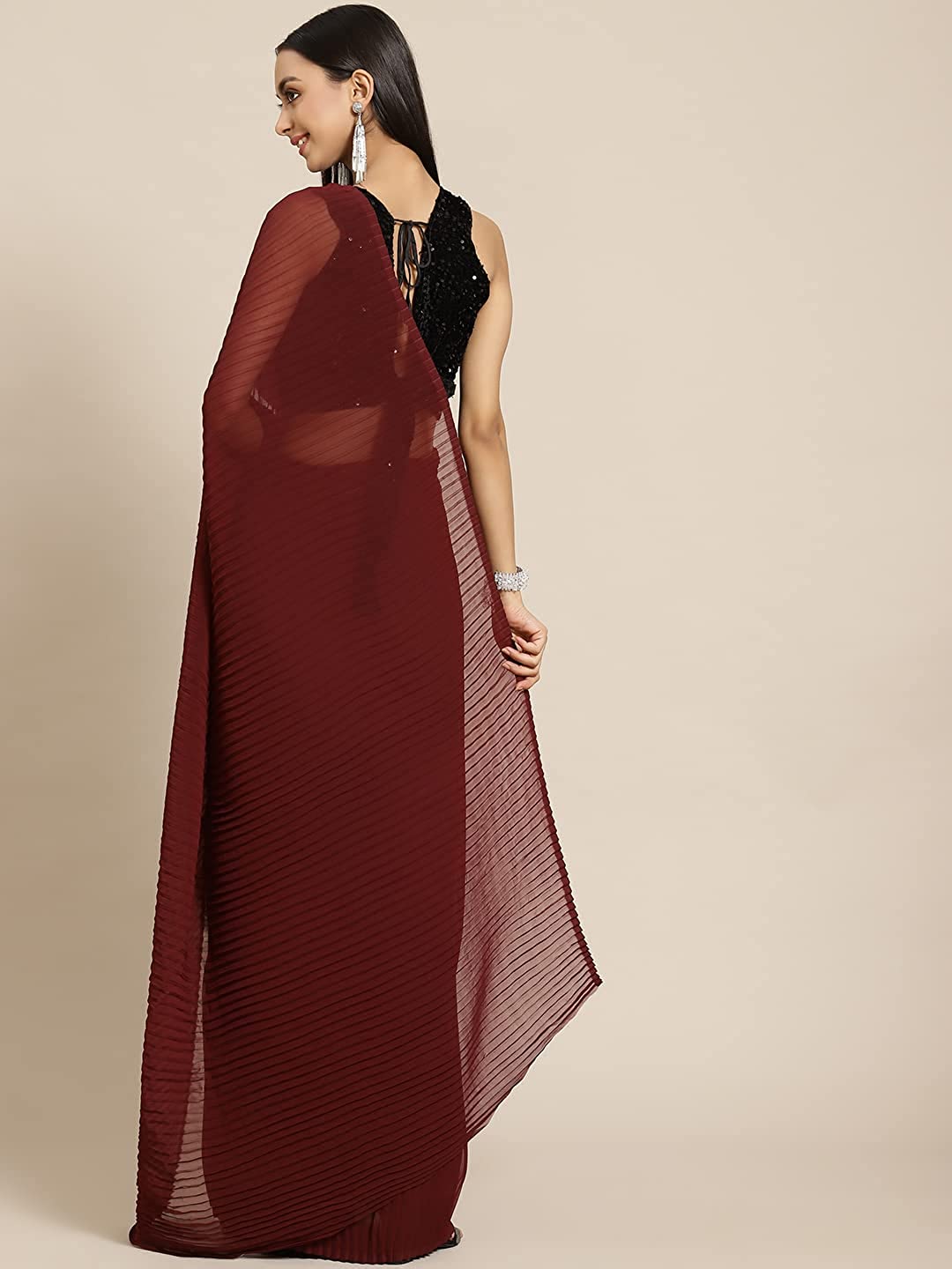 Accordion Pleated Poly Georgette Saree (WA_032_Maroon)