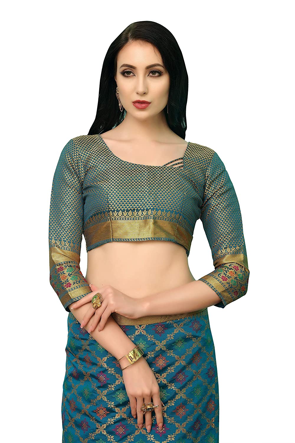• Material : Banarasi Art Silk || Color : Sky Blue || Type: Kanjivaram Jacquard Silk || Golden Zari Work