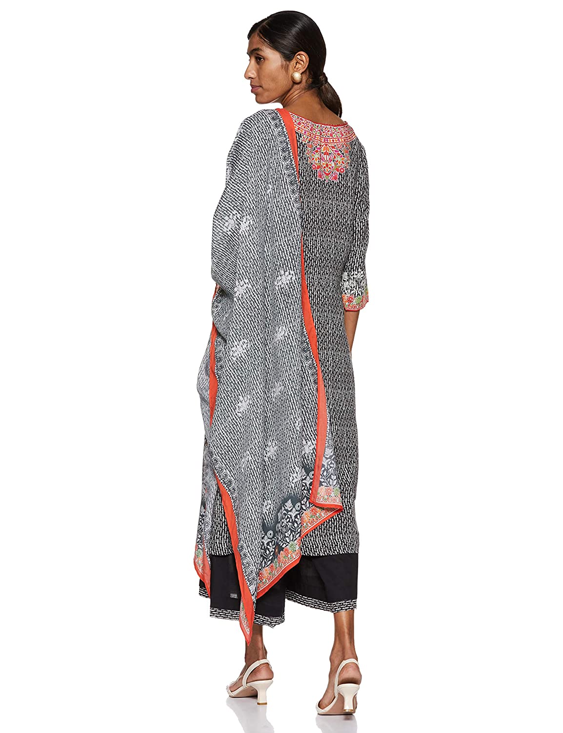 • Glam up your daily look with this black suit-set by Biba; It is one from our launch; The set combines a straight cut kurta with flared palazzo pants and dupatta