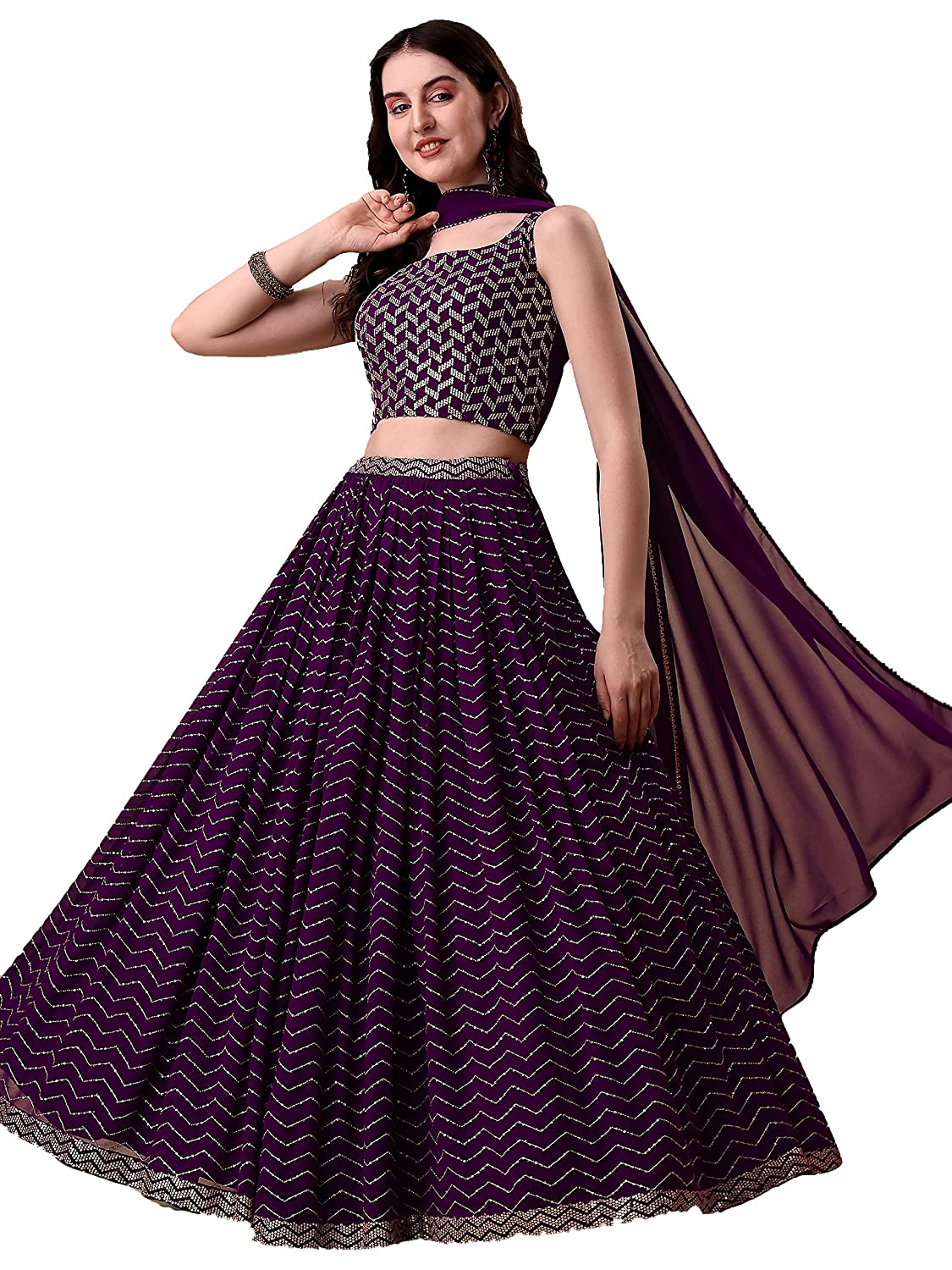 • Color: Lehenga Colour: Purple, Choli Colour: Purple, Dupatta Colour: Purple
