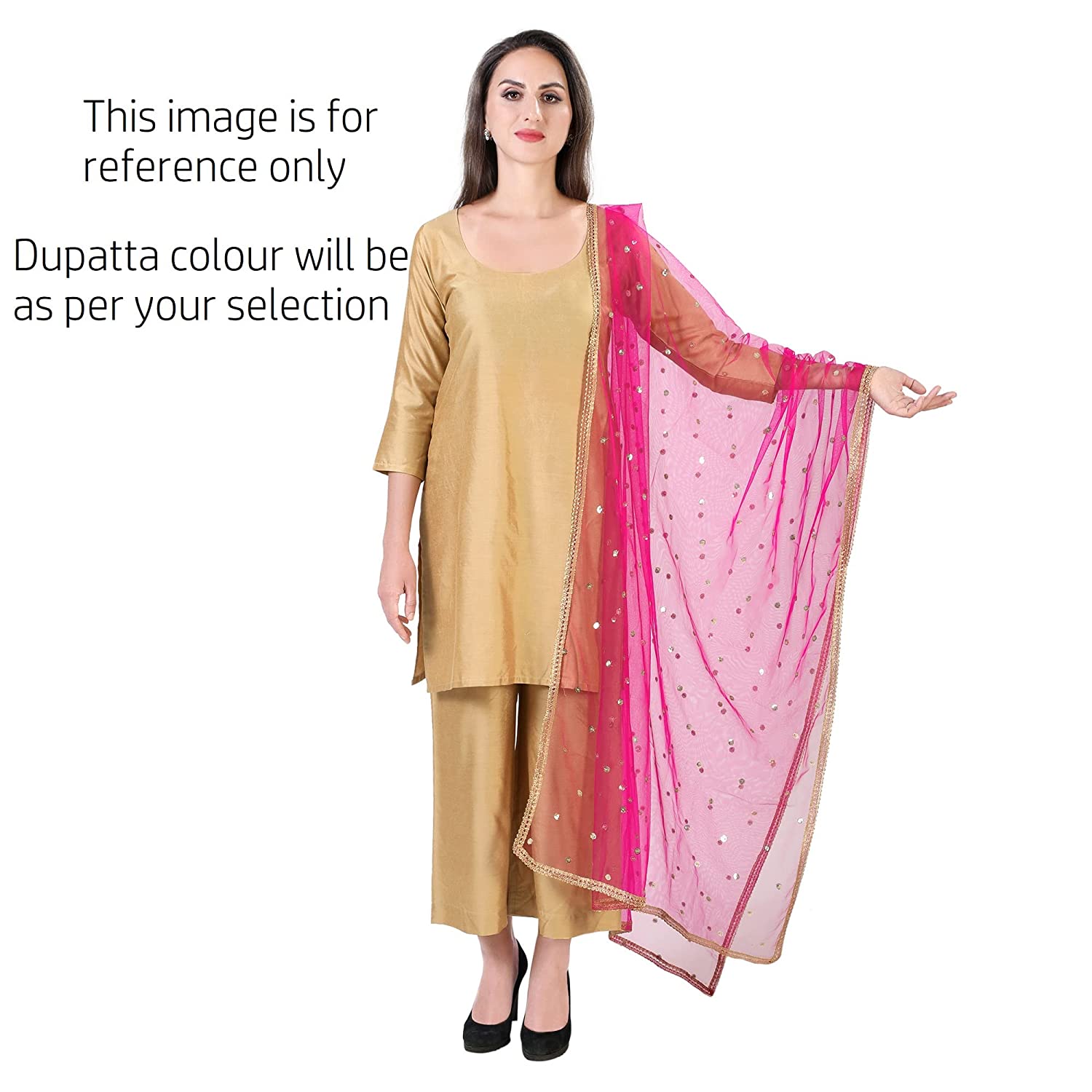• The whole dupatta has golden sequence embroidery