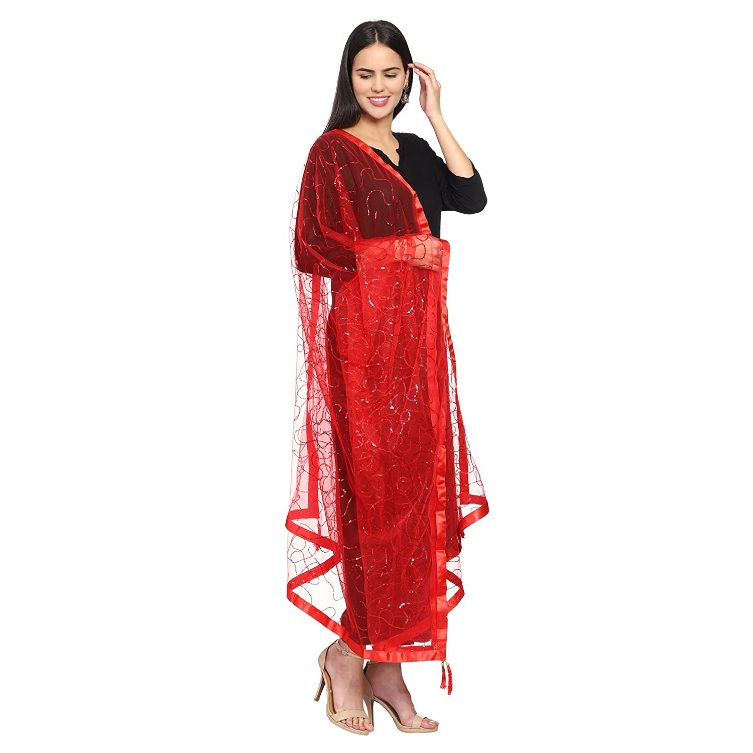 • Soft net dupatta with satin lace in border and matching sequin work all over the body. Wear it with any basic or festive Kurta/Kurti/lehanga/suit/skirt top for best look