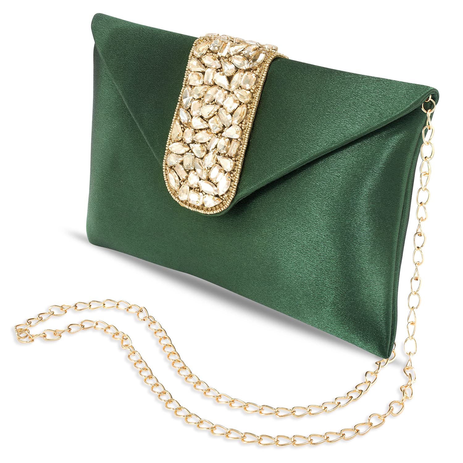 - KEY FEATURES : Wedding Clutch Dimension:- L - 9.0 Inch x W - 2.4 Inch x H - 6.1 Inch, Weight - 172 Grams | Type:- Envelope | Color:- Green | Size:- Regular | Material:- Fabric