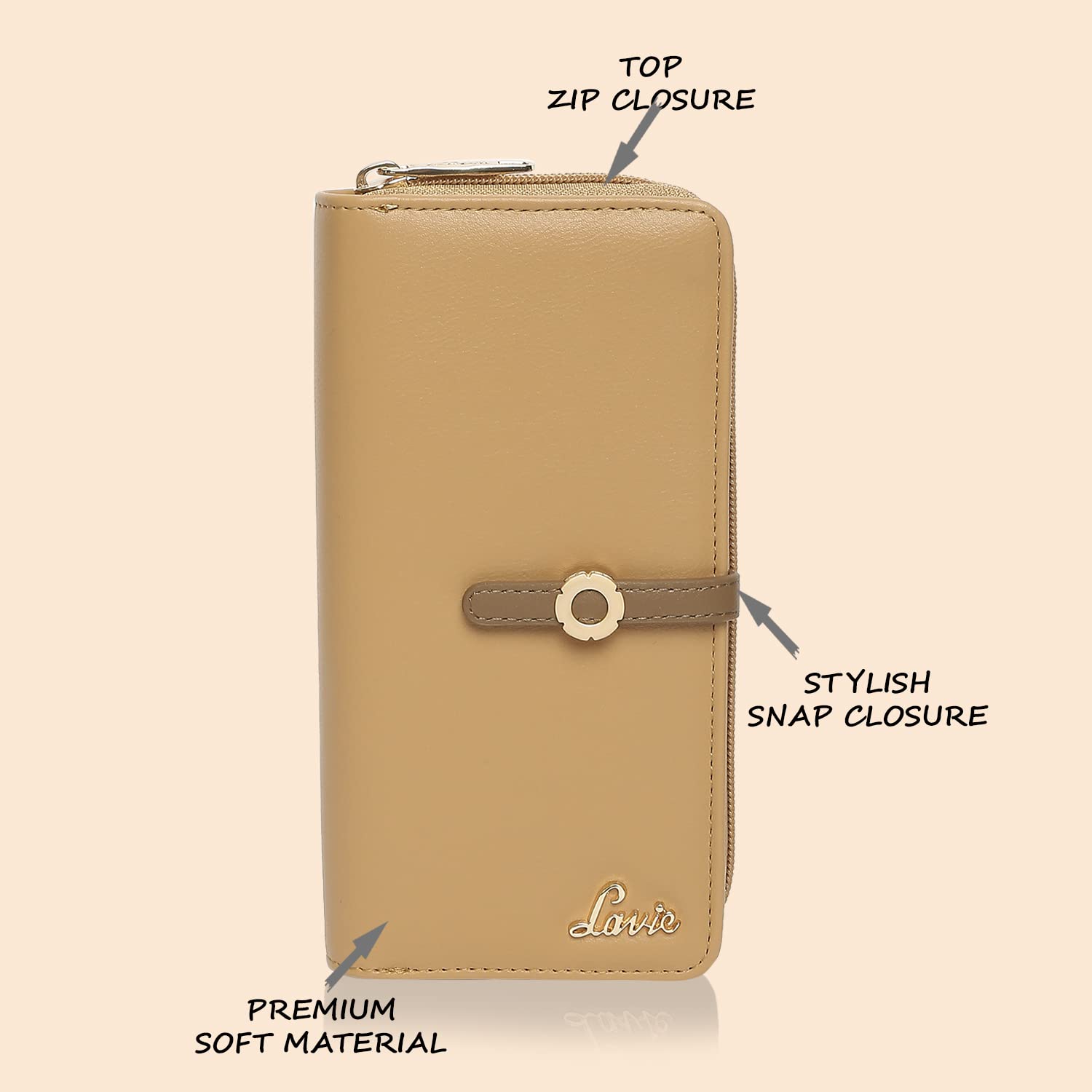 - Indulge yourself with a fashion accessory unlike anything you've ever had before A zip around wallet by Lavie flaunts a luxurious soft synthetic leather finish, metallic label treatment.