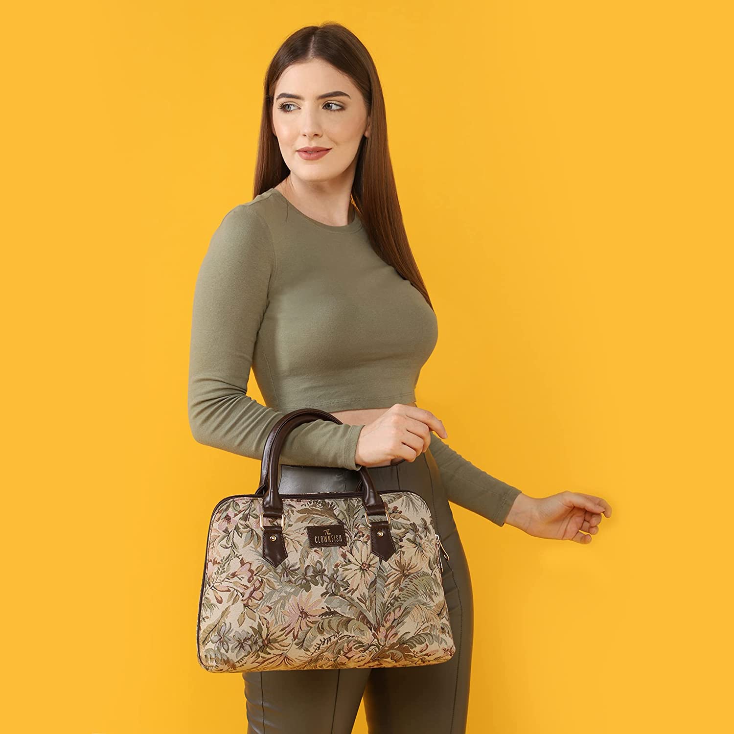 - PREMIUM MATERIAL: This handbag & wallet made in a combination of premium faux leather and Tapestry material. For the inner lining soft feel polyester fabric is used. Comes with durable reinforced fittings like zippers, buckles.