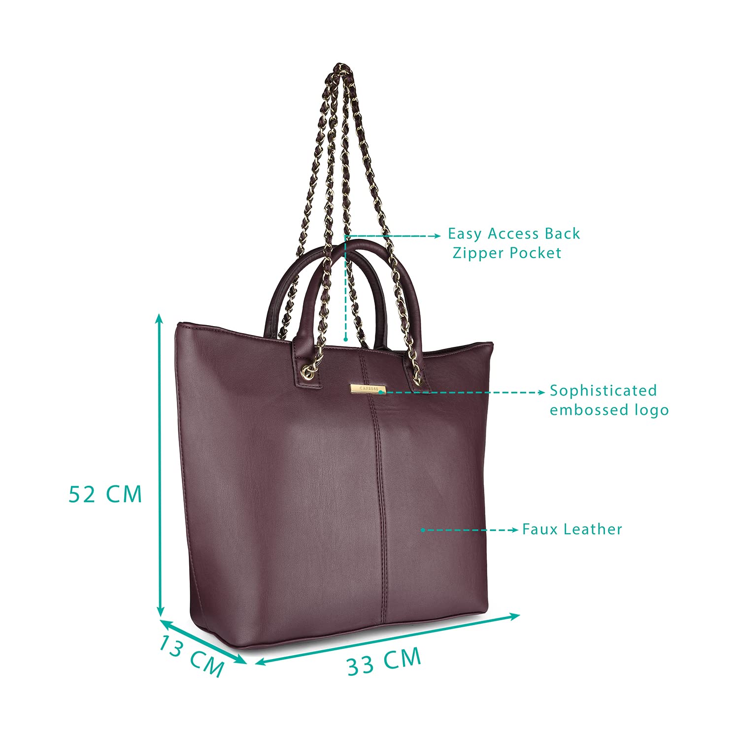 • Material: Faux Leather; Closure: Secure Top Zip Closure