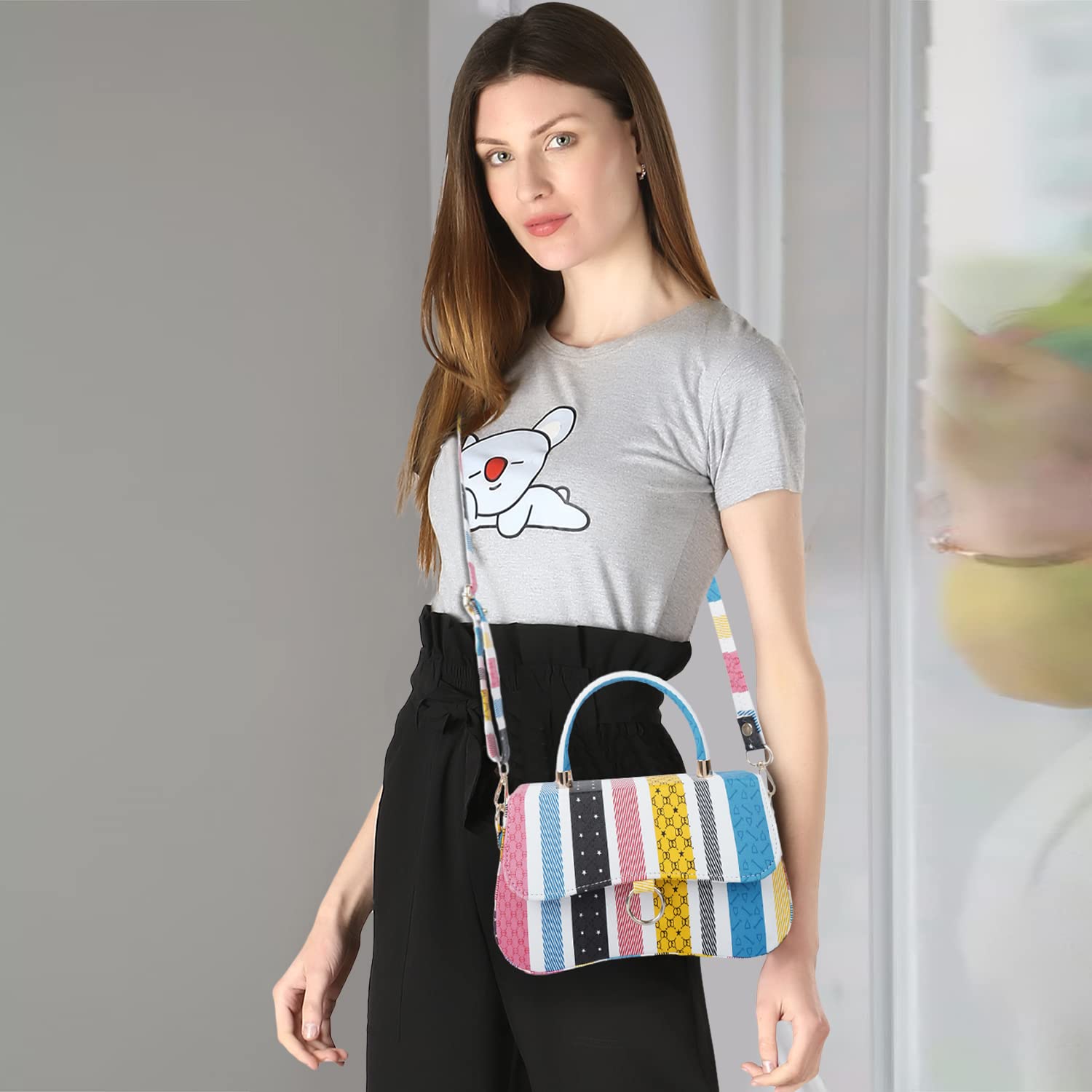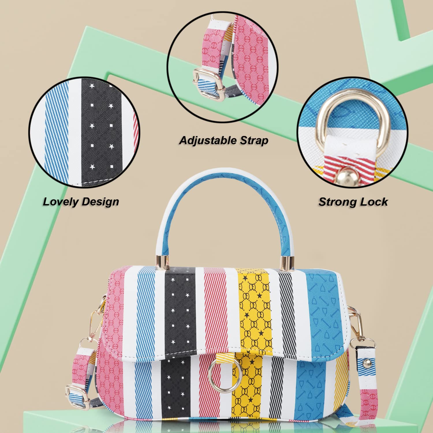 • Leatherette material MULTI colored Sling bag