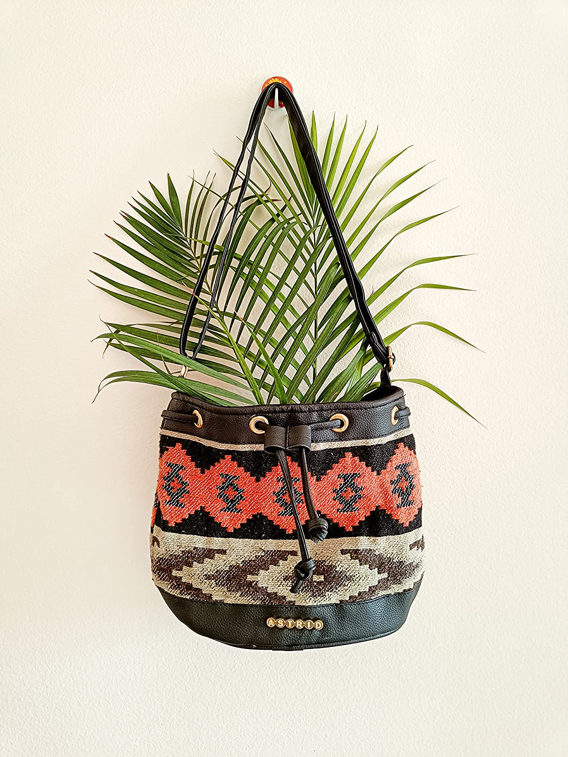 Canvas Sling Bag With Drawstring Closure