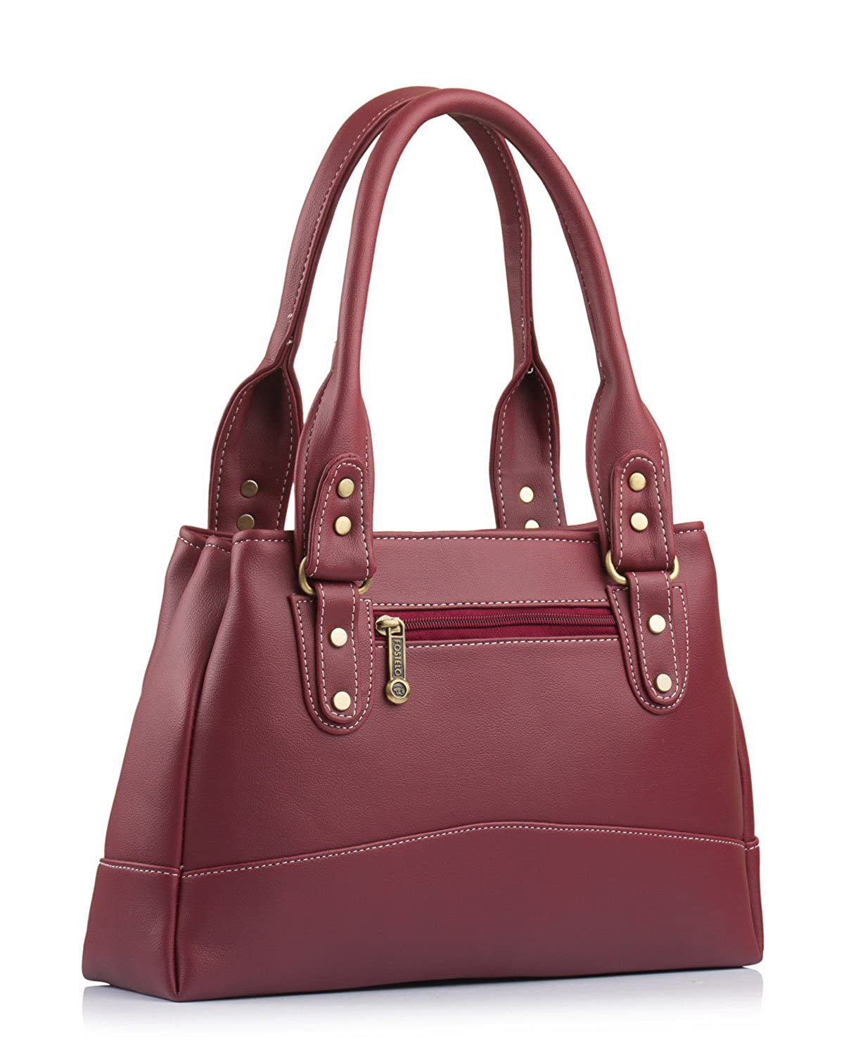 - Spacious and Roomy: Fostelo handbag looks compact but is roomy. You will have enough space to keep all your essentials. This Faux leather handbag contains 3 main pockets, 1 interior middle zipper pocket and 1 exterior back zipper pocket that can comfortably hold iPhone, iPad, wallet, cosmetics, umbrella, books, tiffin box, and so on.