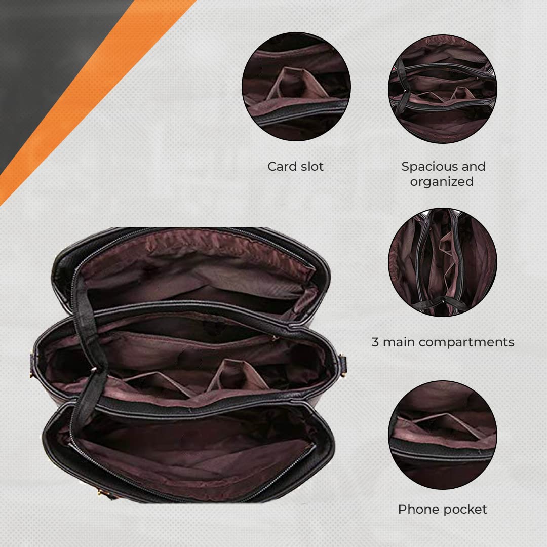 - Spacious and Roomy: Beclina handbag looks compact but is roomy. You will have enough space to keep all your essentials. This leather handbag contains 3 main pockets, 1 interior middle zipper pocket, 2 interior slip pockets, and 1 exterior back zipper pocket that can comfortably hold iPhone, iPad, wallet, cosmetics, umbrella, books, tiffin box, and so on.