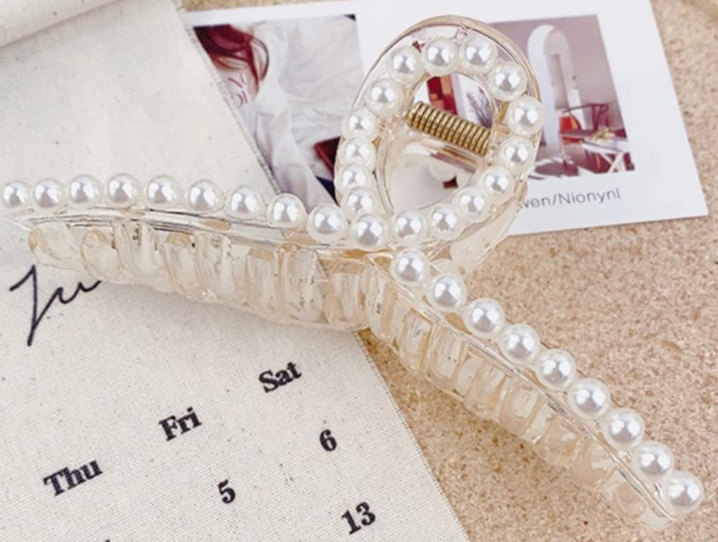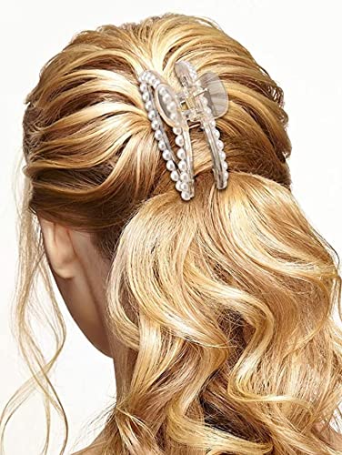 2 Pcs Large Pearl Hair Claw Clips White Hair Clips Thick Long Hair Jaw Clips Clutches Barrettes Hair Accessories for Women and Girls Hair Claw Thick Hair Claw Clamp Strong Hold