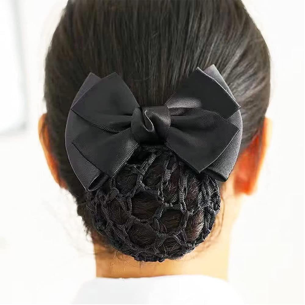 Bowknot Snood Net Barrette Hair Clip Bun Cover Hairnet Lace Bow Decor for Women (Black), Pack of 1