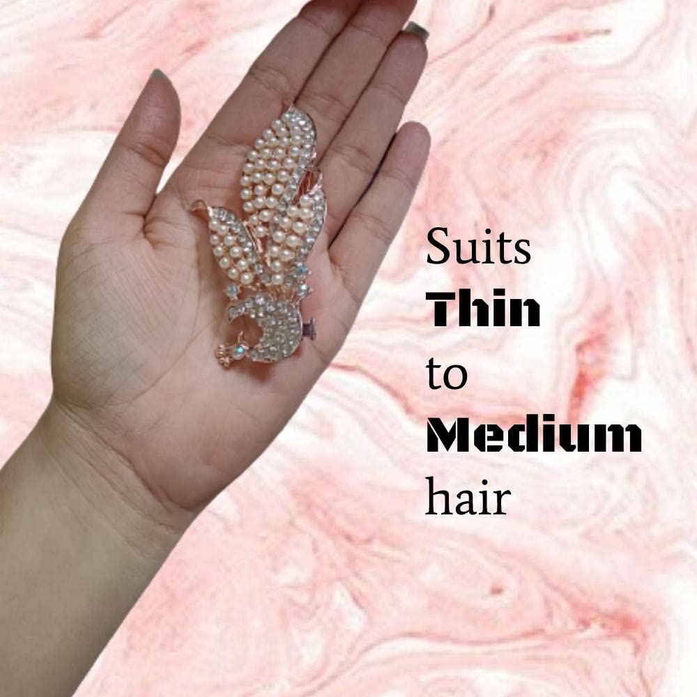 Women Stylish Hair Clips For Women Clips For Girls Metal Clips For Hair, Stone Pearl Hair Clip Stone Clips For Women Claw Clips Hair Clutch Rosegold Colour, 1Pc