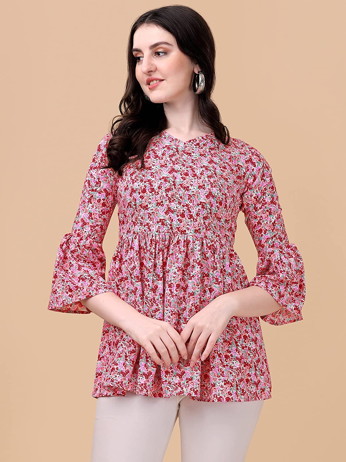 Women's Casual Bell Sleeves V-Neck Foral Top
