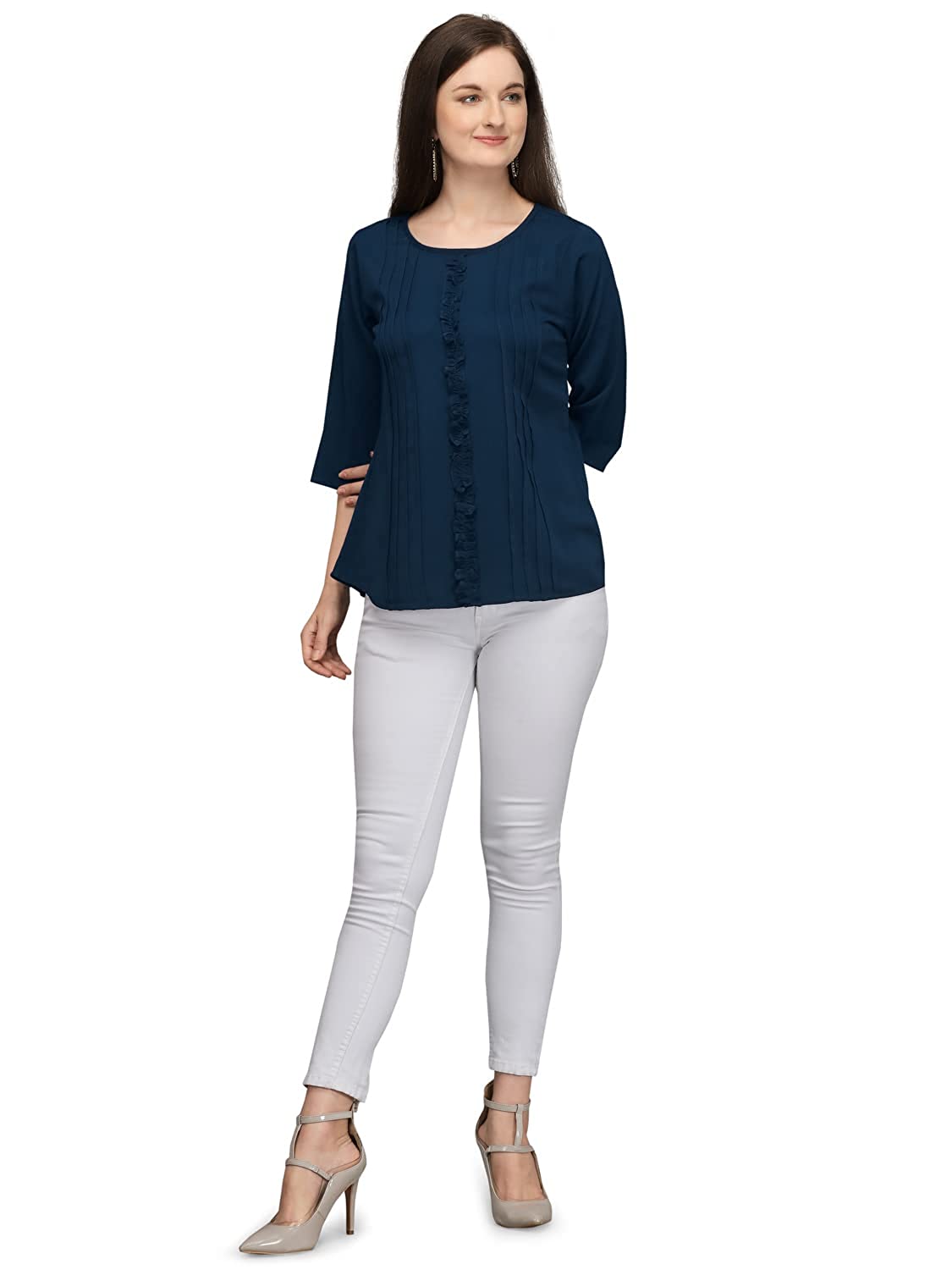 Women's Regular Fit Solid Western Top | Casual 3/4 Sleeve Tops for Girls