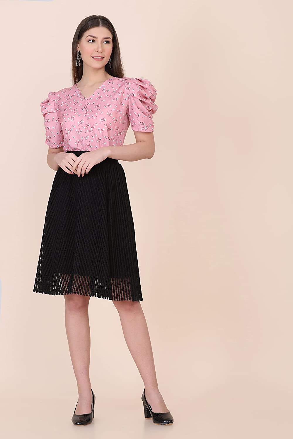 • Neck Style: Frill Round Neck