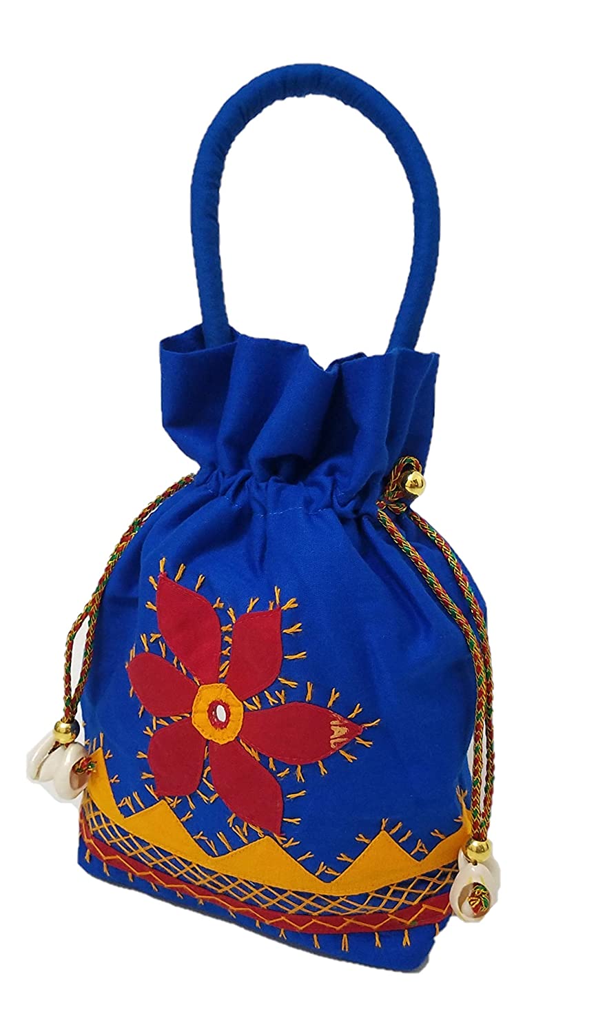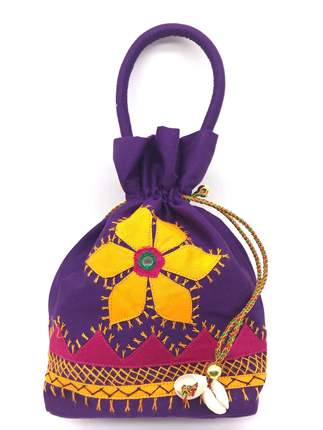 - (Material) A soft high quality Cotton (Poplin Fabric) with heavy Push lock bag. A Piece of Art, Banjara Embroidery , tiny Mirrors, Beads , Shells and Colourful Thread work called Traditional Banjara needle craft . When you touch the bag feel smooth, Craft Design on Both side, easy to wear and carry.