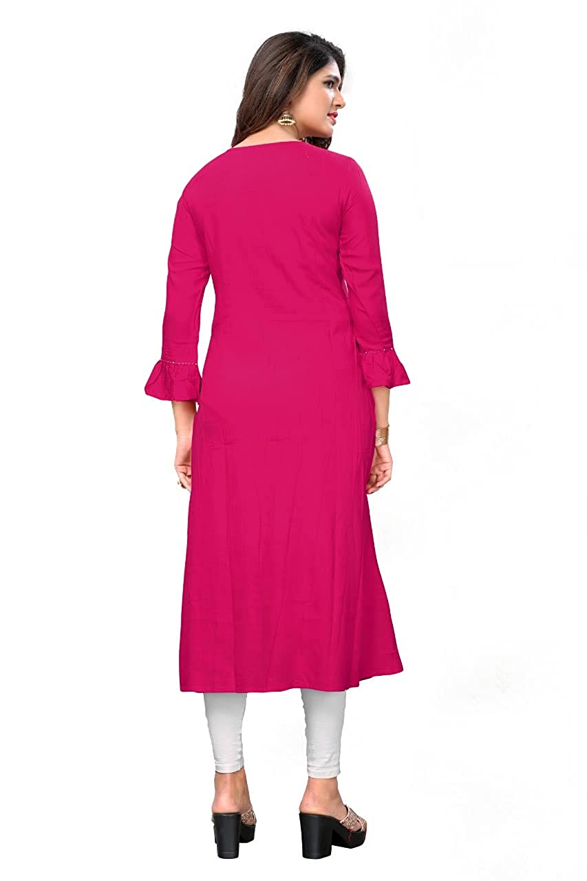 • Color: Pink || sleeve type: bell sleeve || sleeve length: 18 inches || neck Type: round neck