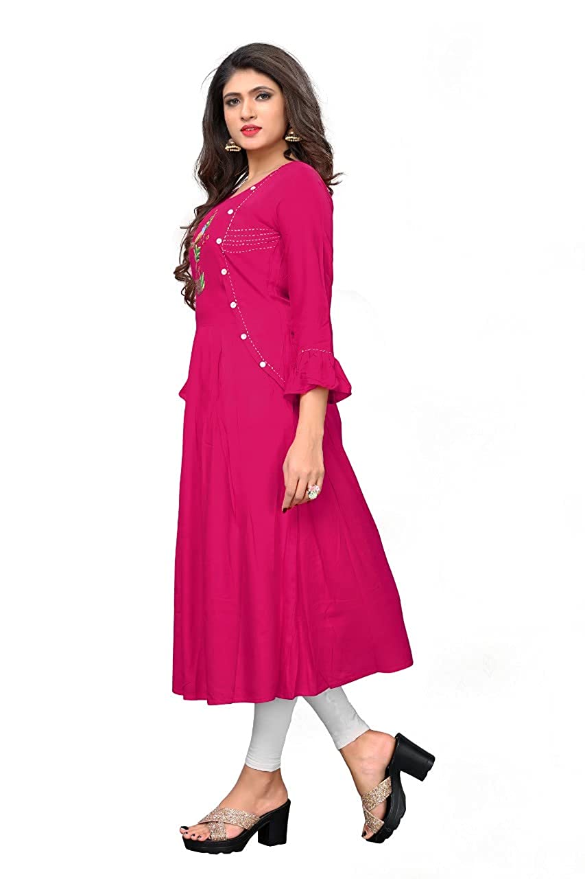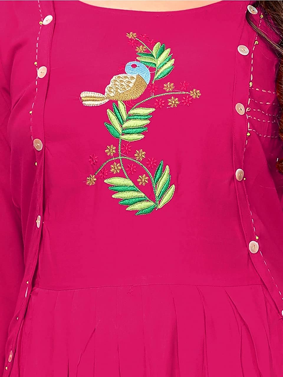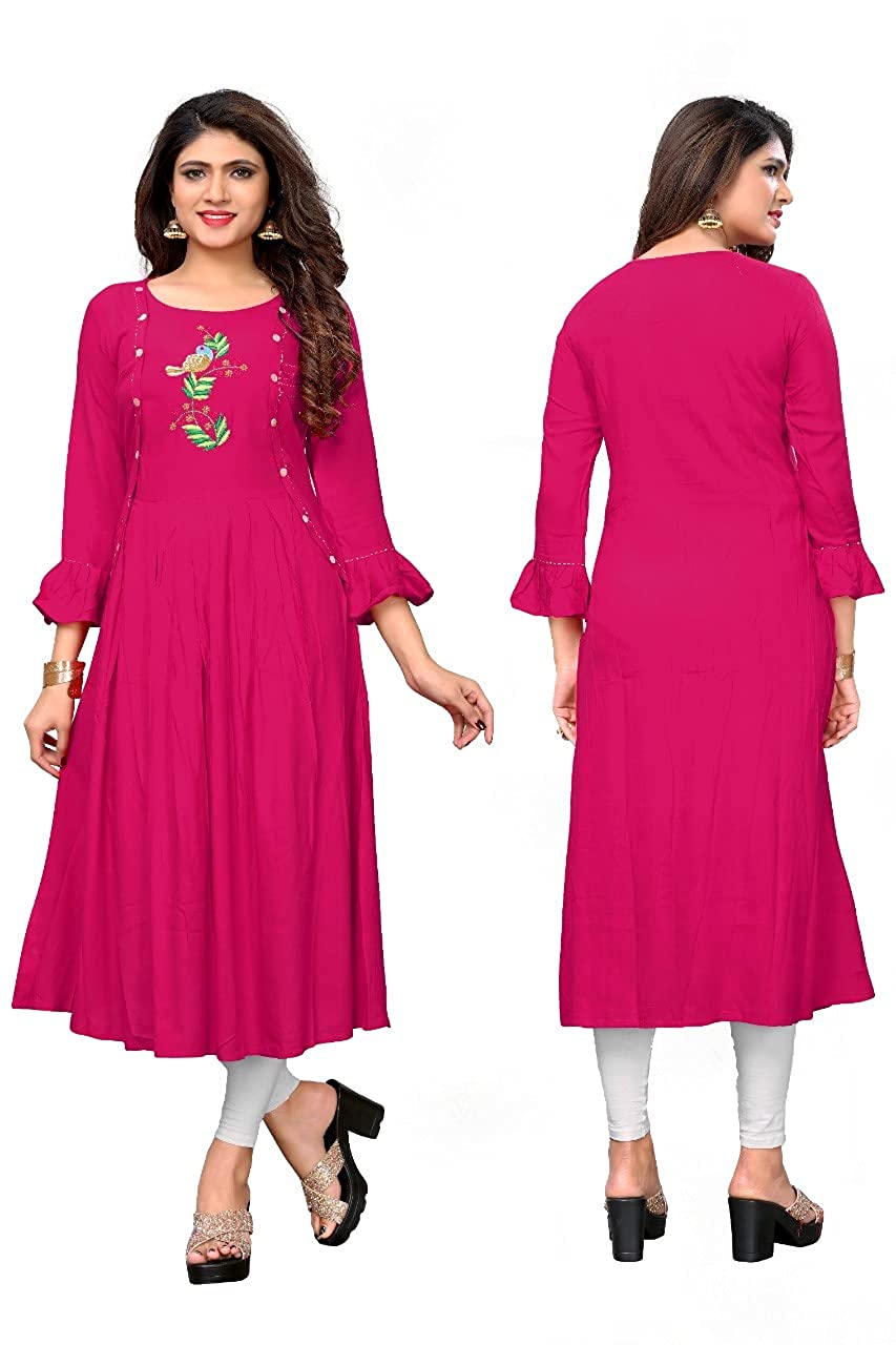 • Kurti (top) fabric: Rayon|| kurti (top)style: a-line || kurti (top) length: 44 inches || pattern: plain and embroidered