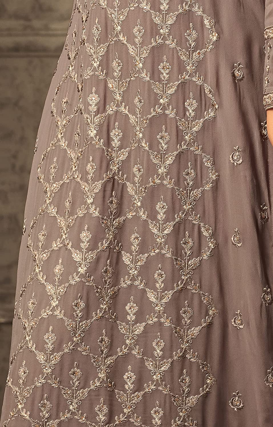 • Sleeves: Heavy Faux Georgette with Embroidery Work + Diamond work; Inner:- Santoon | Bottom: Faux Georgette | Dupatta: Nazneen