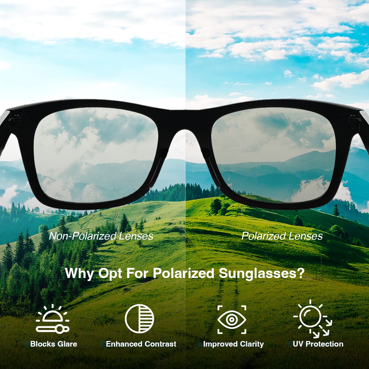 - LENS TECHNOLOGY: The collection features polarised lenses that protect your eyes from the sun’s harmful UV rays, reduce glare and enhance visual clarity. The lenses are made from a new technology called TAC Polarized, formulated for superior visual and polarization clarity. Lens have a scratch resistant coating and block 100% harmful UV rays up to 400 nm and are very lightweight and highly impact resistant.