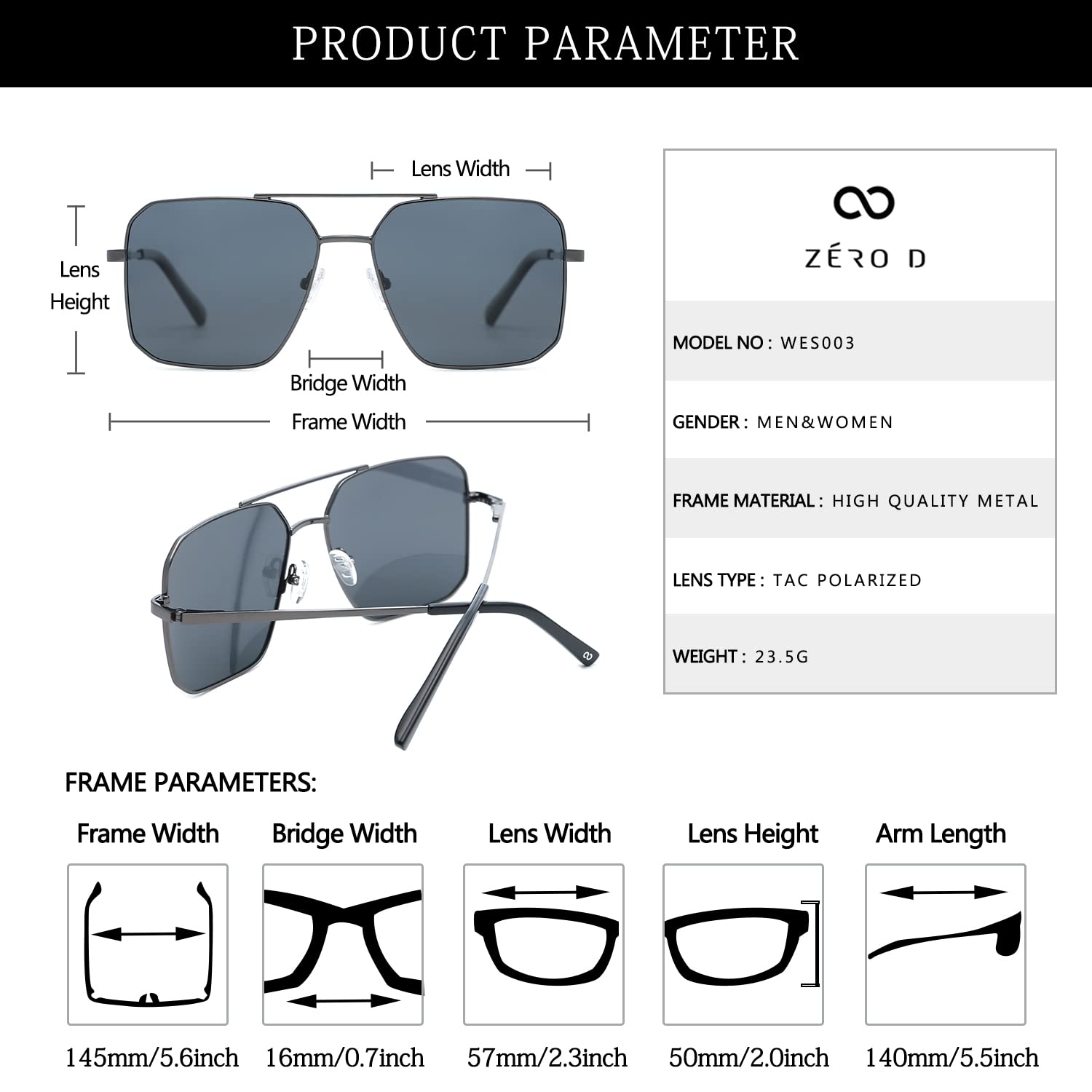 - ✔️Sunglasses for men branded:Zéro D Premium Metal Alloy Makes the Sunglasses more Durable for Prolonged and High-Frequency use with High Elasticity, Flexible Arms and Adjustable Silicone Nose Pad. Our Frame is Suitable for Most People.