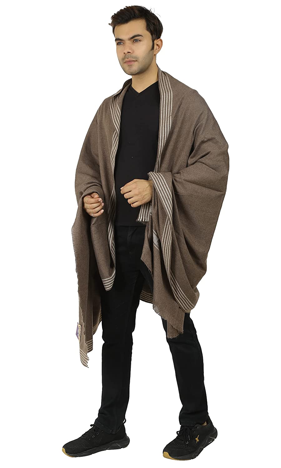 - Perfect Companion for a Man to feel warm and comfortable in Winters. Specially made in Kashmir, these thick and warm wool shawls have a soft feel and come in natural colors. They are consist of 100% pure wool.