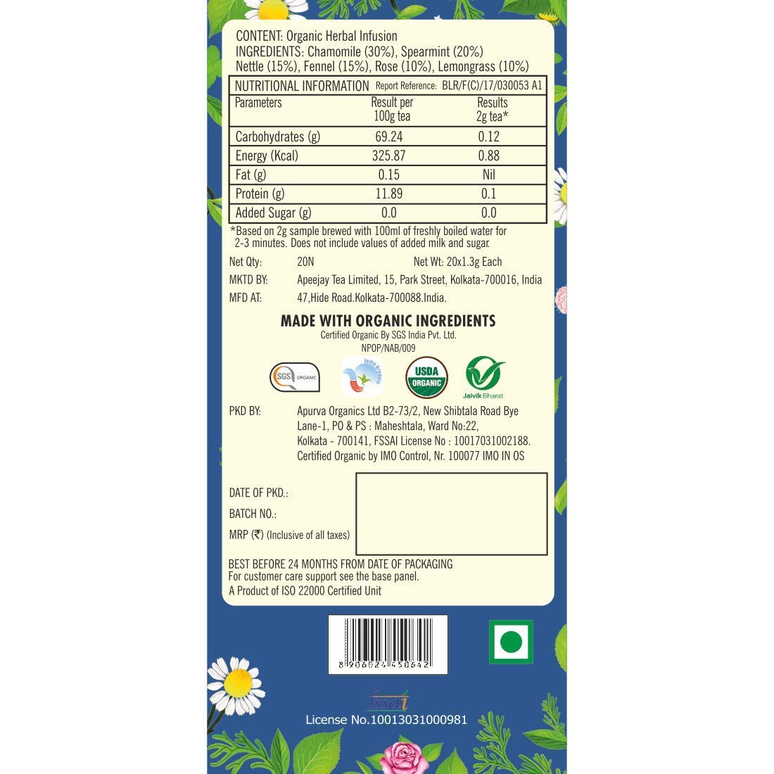 | Flavour | Spearmint, Lemongrass, Rose, Chamomile |
