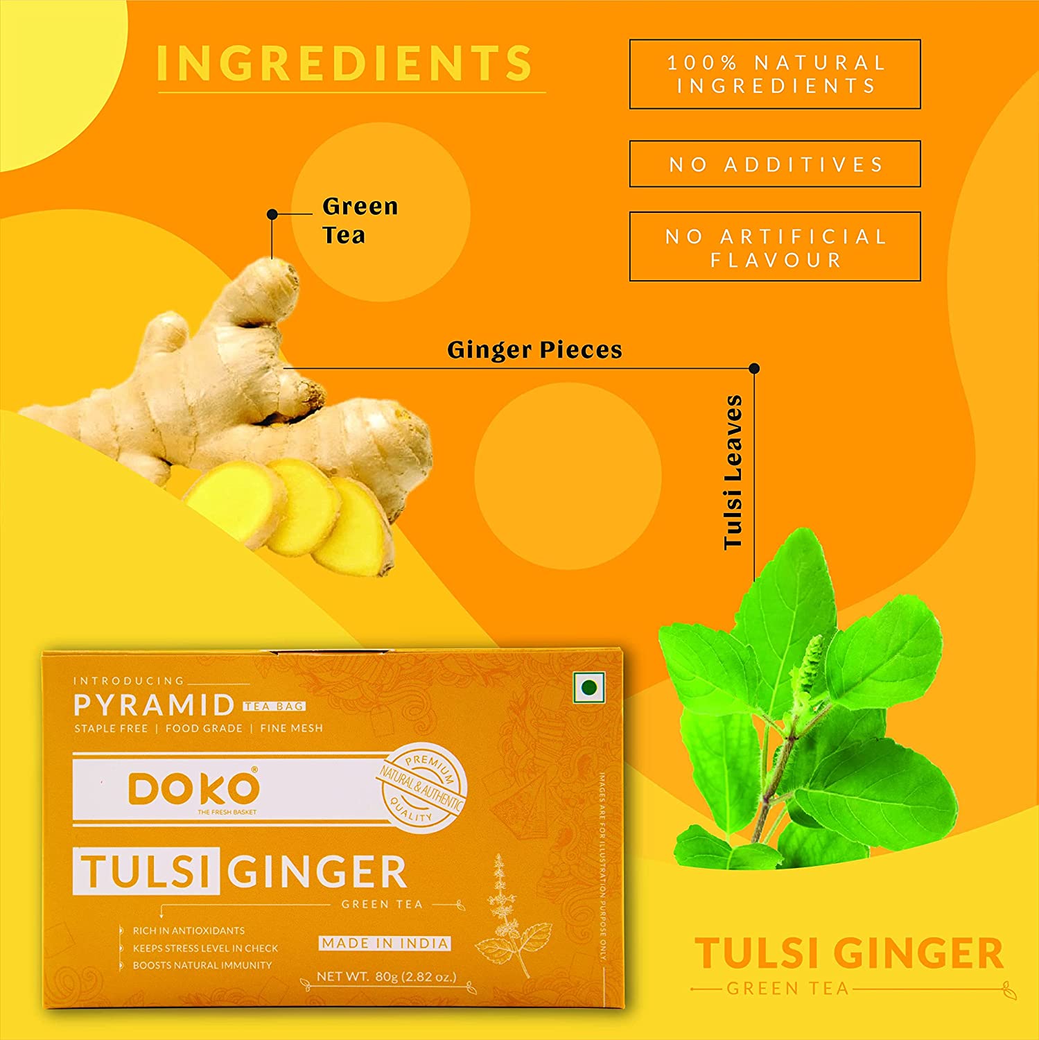 • Indulge in the authentic taste of loose-leaf tea with light limy-yellow appearance and uplifting aroma of ginger and soothing fragrance of Tulsi leaves.