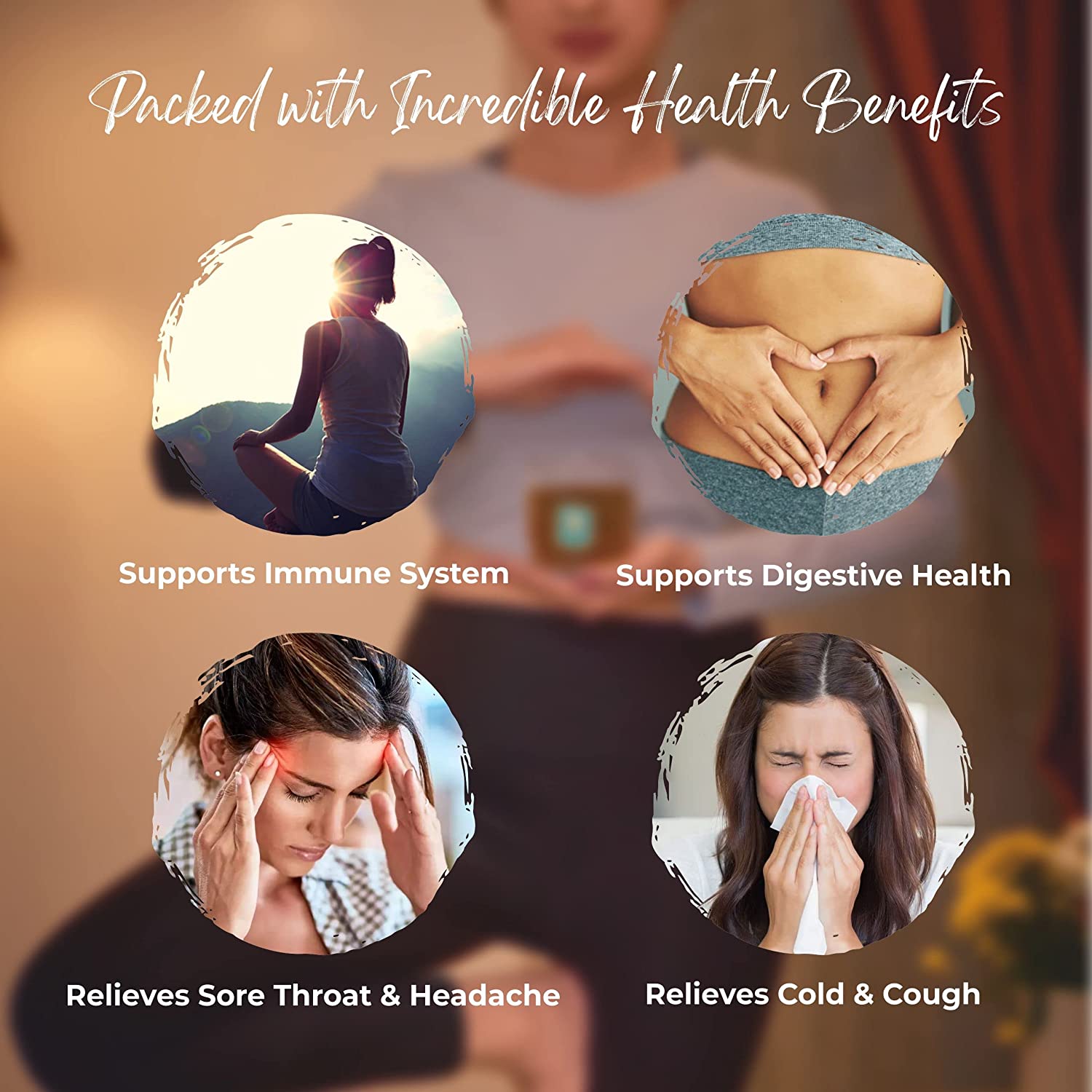 • Ingredients & Benefits: Black Pepper, Turmeric, Long Pepper – Boosts Immunity, Relieves Cold & Cough, Anti-Viral Ginger, Licorice, Cinnamon – Relieves Sore Throat & Headache Coriander, Cumin, False Black Pepper, Sugandhi, Mace – Helps Digestion Clove, Cardamom, Nutmeg – Super Rich in Antioxidants Ashwagandha – Relieves Stress, Increase Energy/Stamina Caffeine Free, 100% Natural & No Added Colors, Flavors or Preservatives