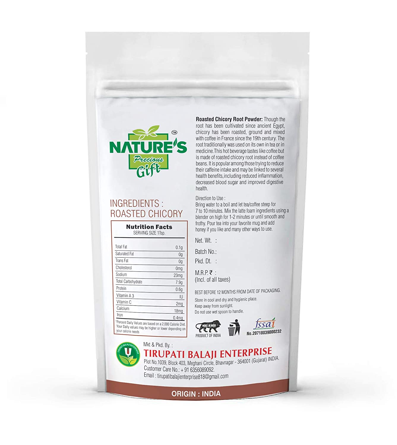 Roasted Chicory Root Powder, 250 g