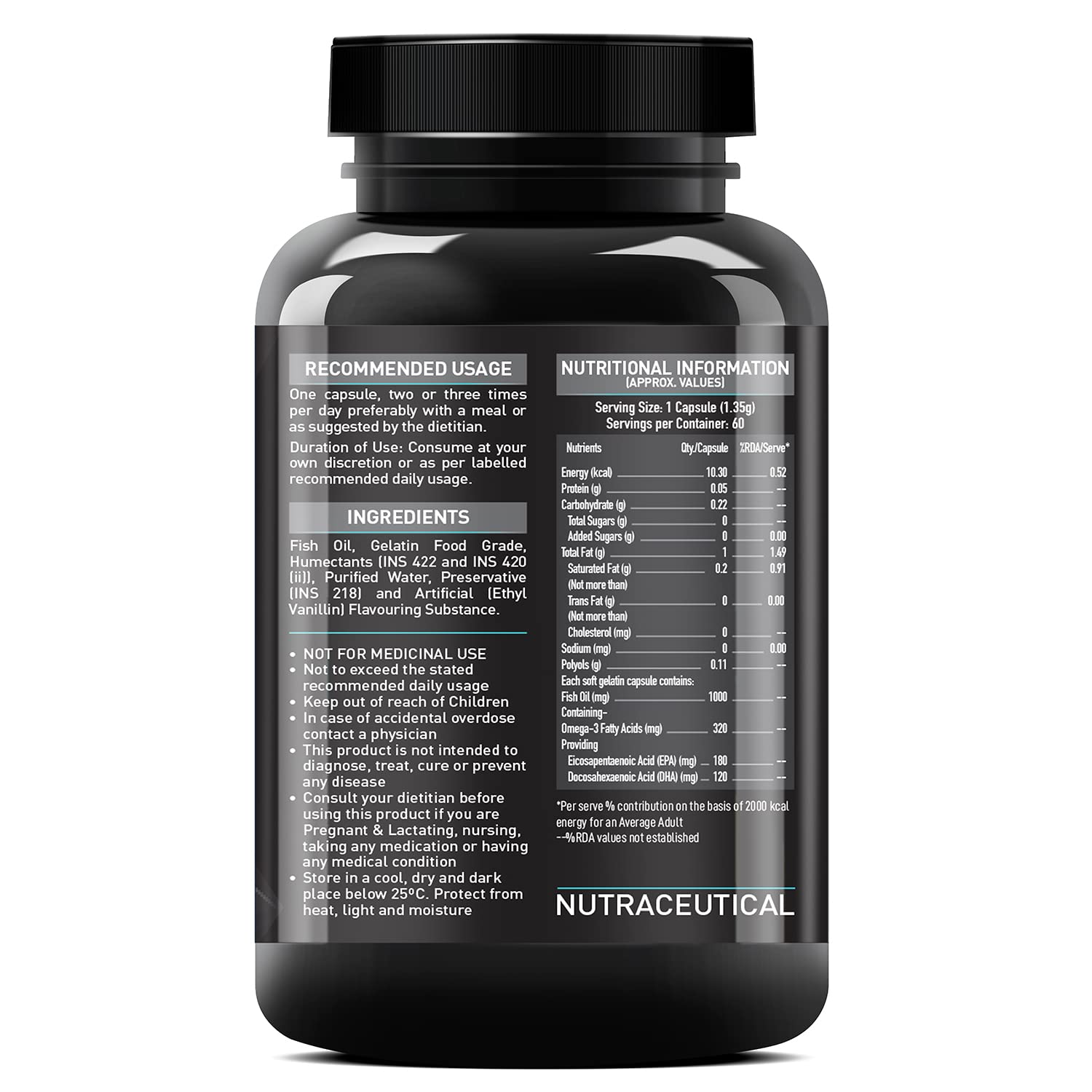• RICH SOURCE OF OMEGA 3: MuscleBlaze Fish Oil 1000 mg is fortified with the goodness of 180 mg EPA & 120 mg DHA to support cardiovascular health, brain function, joint flexibility, immunity, and muscle synthesis