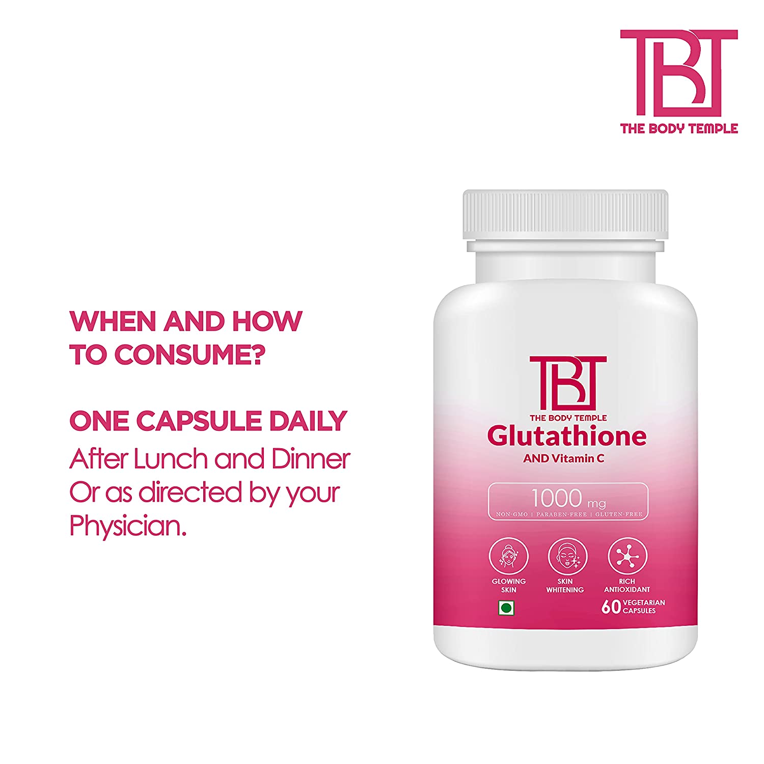 Glutathione for Healthy & Radiant Skin for Men & Women with Vitamin C 60 Veg Capsules
