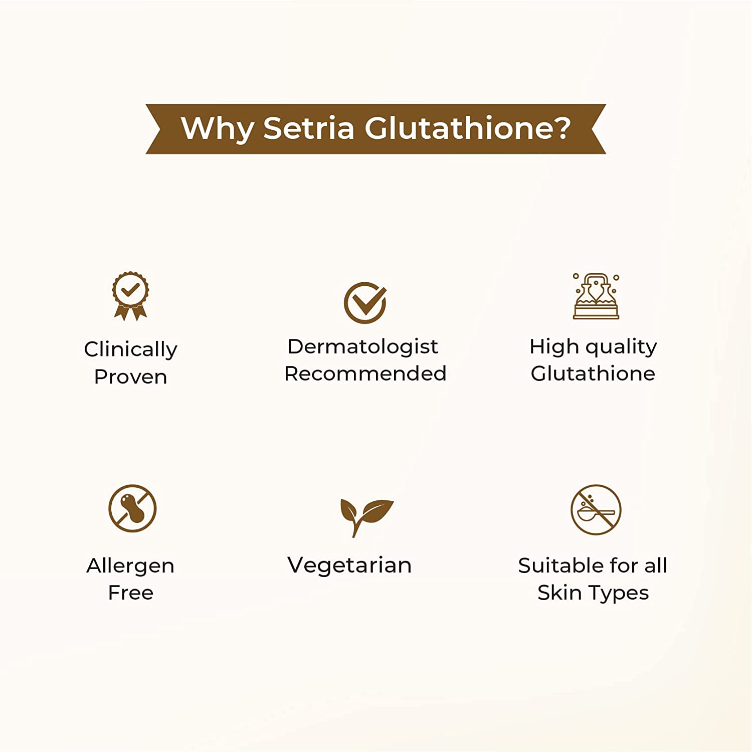 • Detox from within: Setria L-Glutathione is a strong antioxidant and an effective detoxifier. It helps keep the levels of free radicals in the body in check to reduce inflammation. This offers overall healthy looking and healthy feeling skin.