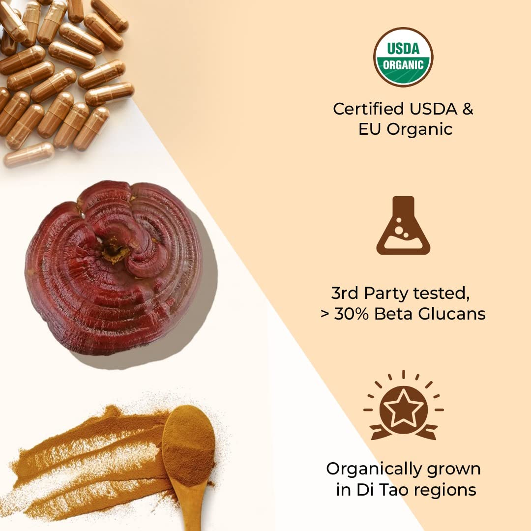 Organic Reishi (Ganoderma Lucidum) mushroom. No mycelium or fillers